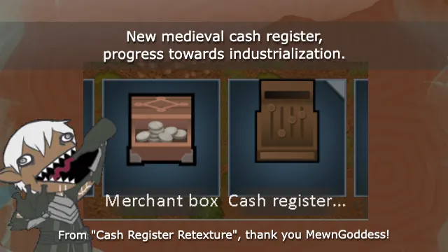 [*] Thank you to the fantastic MewnGoddess, who originally made Cash Register Retexture which the art for the napkins and Merchant Box came from.
