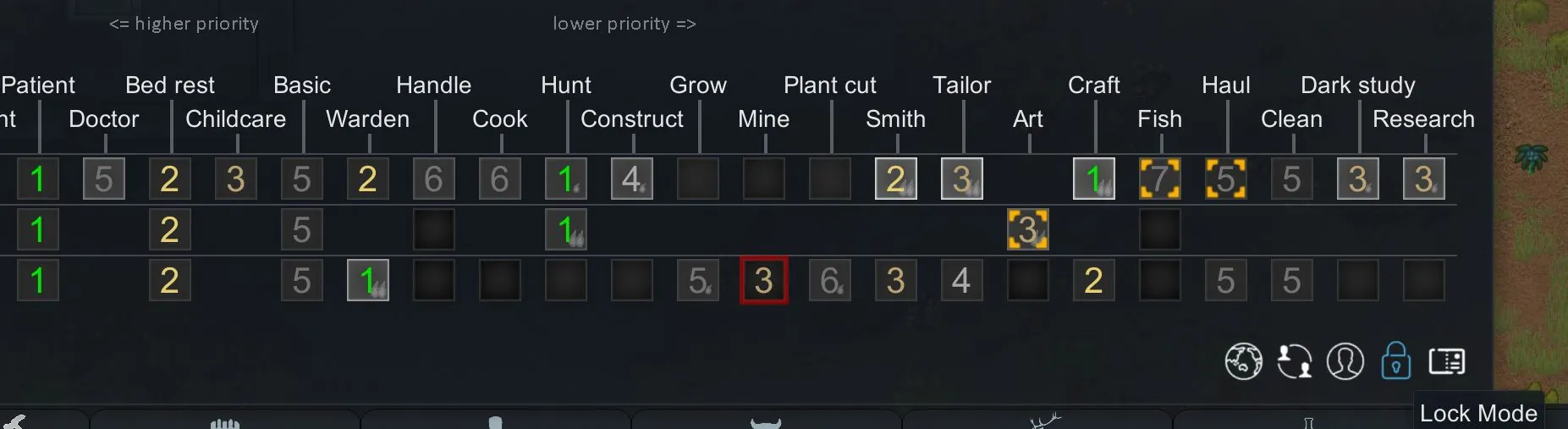 Automatically sets work priorities based on skill levels and attributes. Supports mods that break the level 20 cap, and intelligently handles work types unaffected by skills.