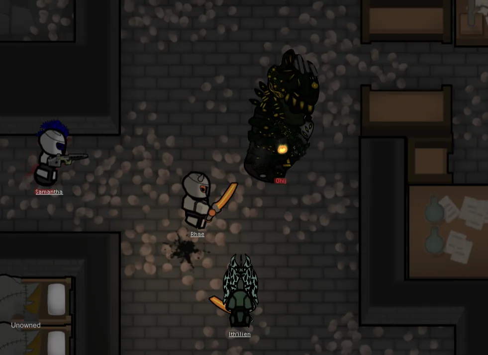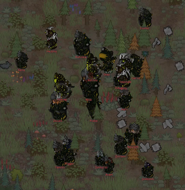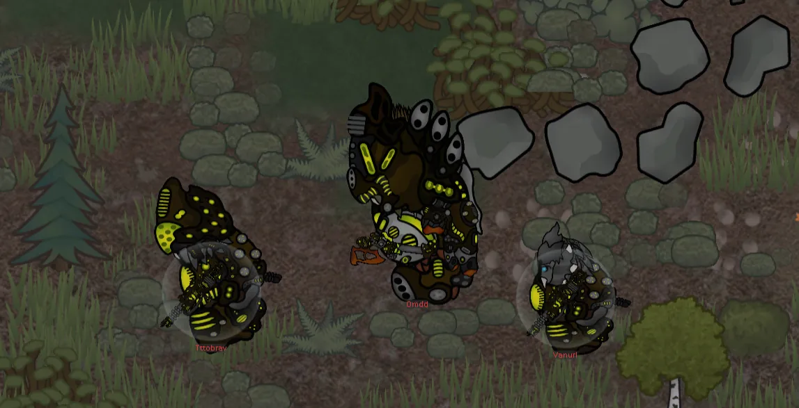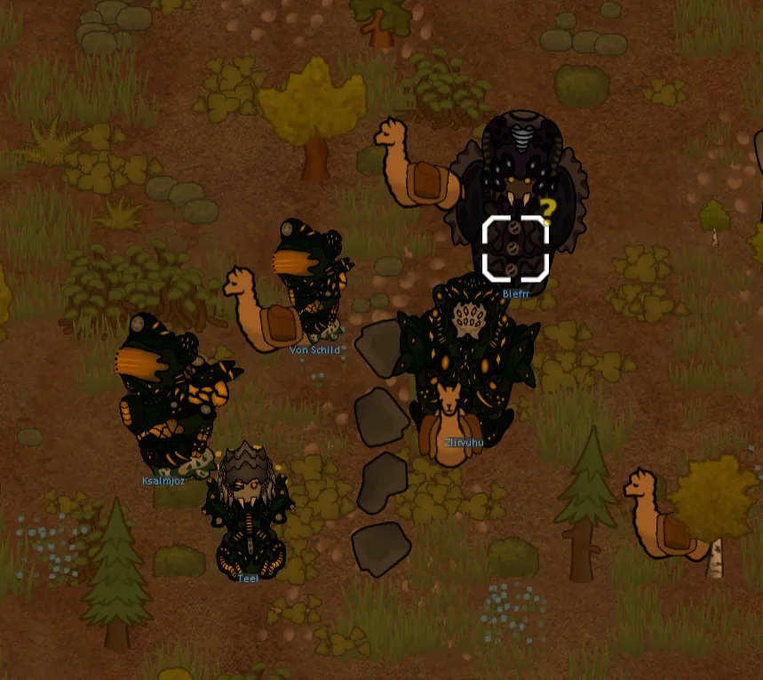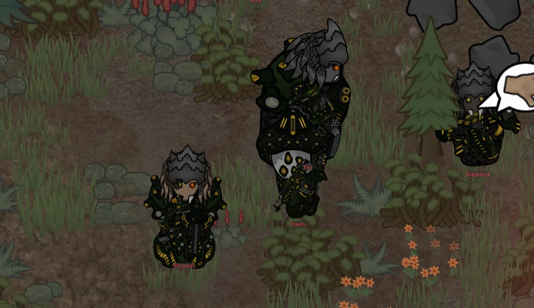 And, of course, they'd have to have a mechanic exclusive to them to [i] really [/i] make sure they're distinct. Lahlit armor is made solely with efficiency and cost-effectiveness in mind. It's not pretty, and it's also not very durable. You can very well break Lahlit armor. Skilled colonists can shoot the exo-suits right off them.