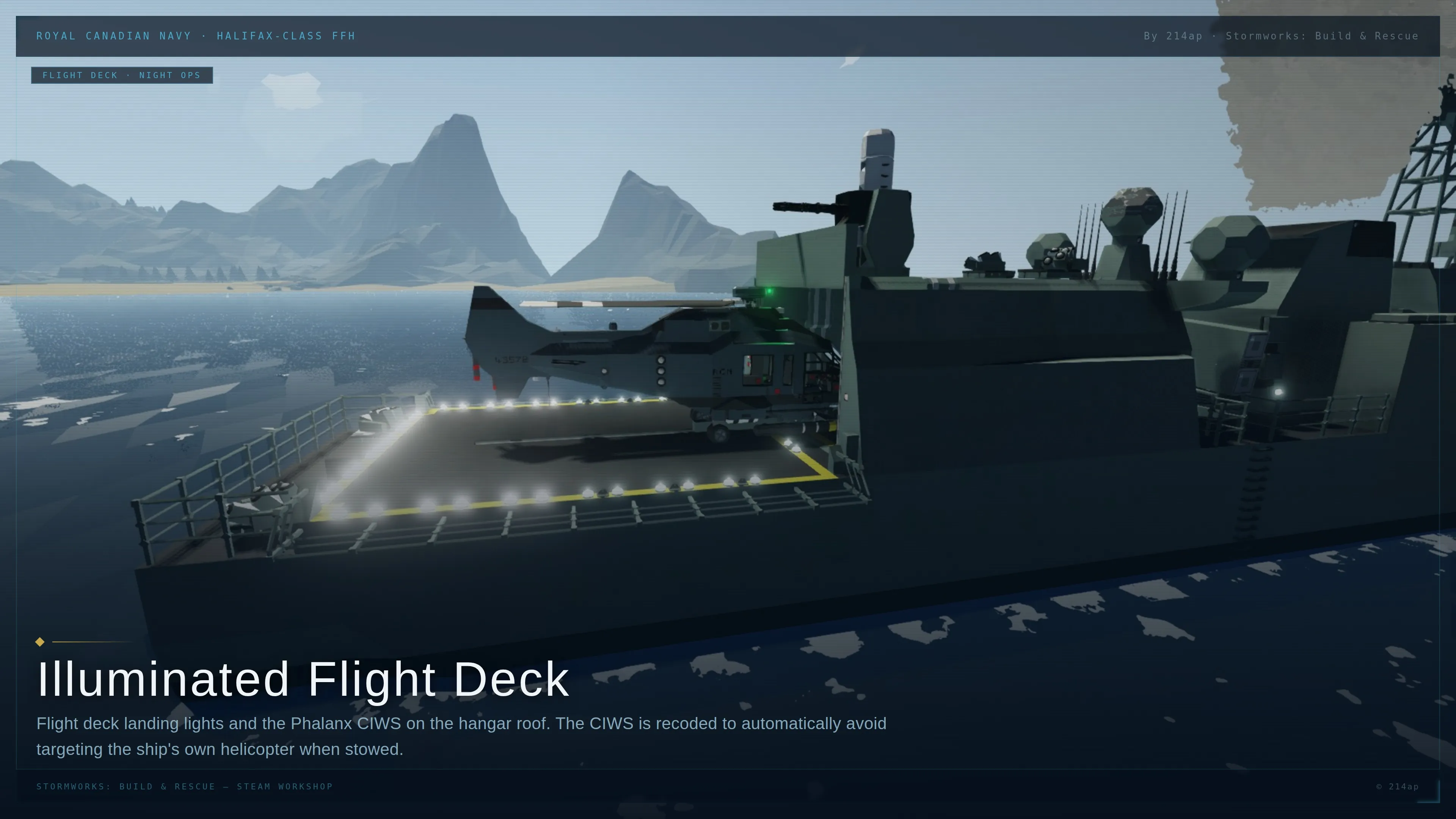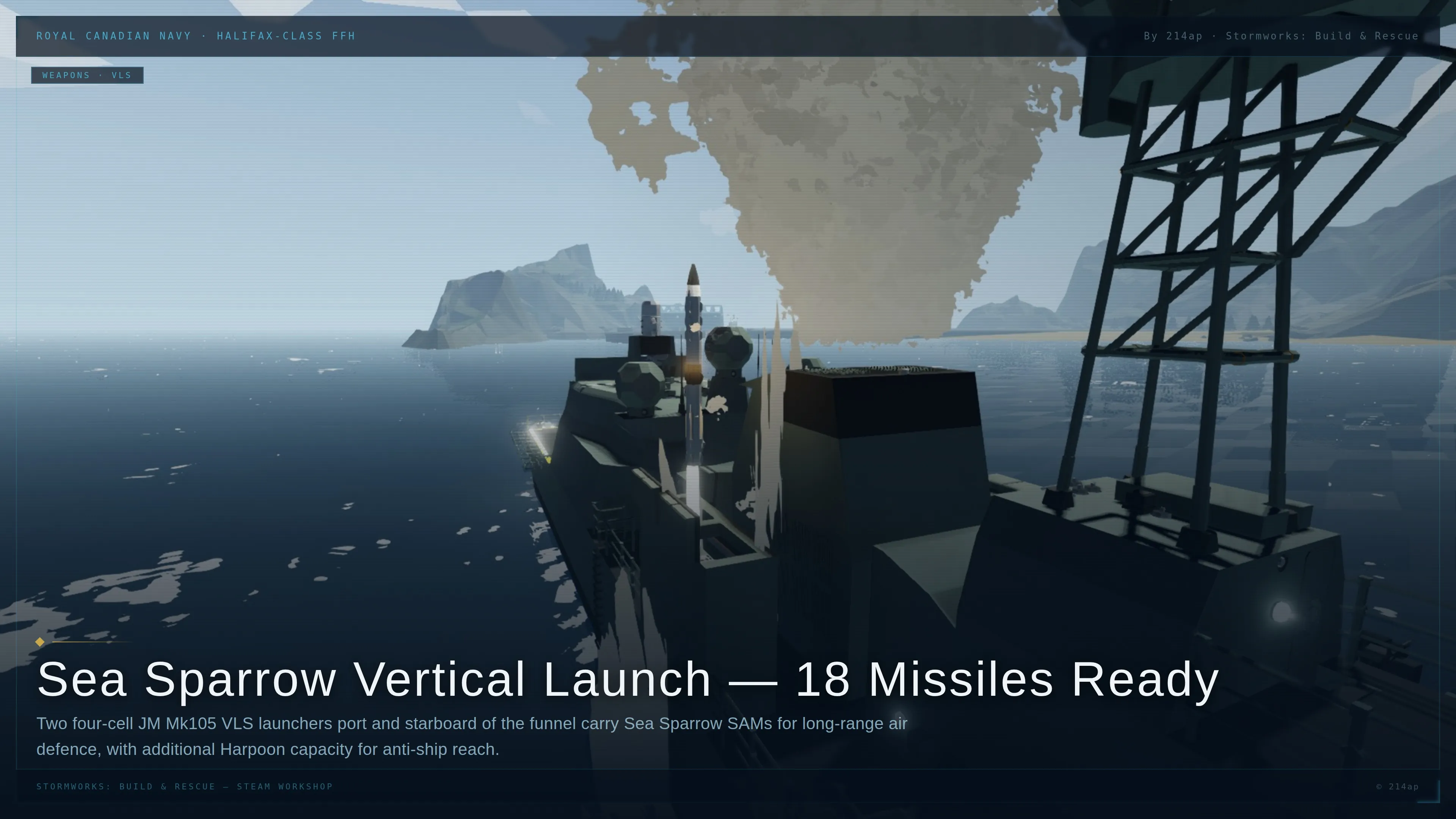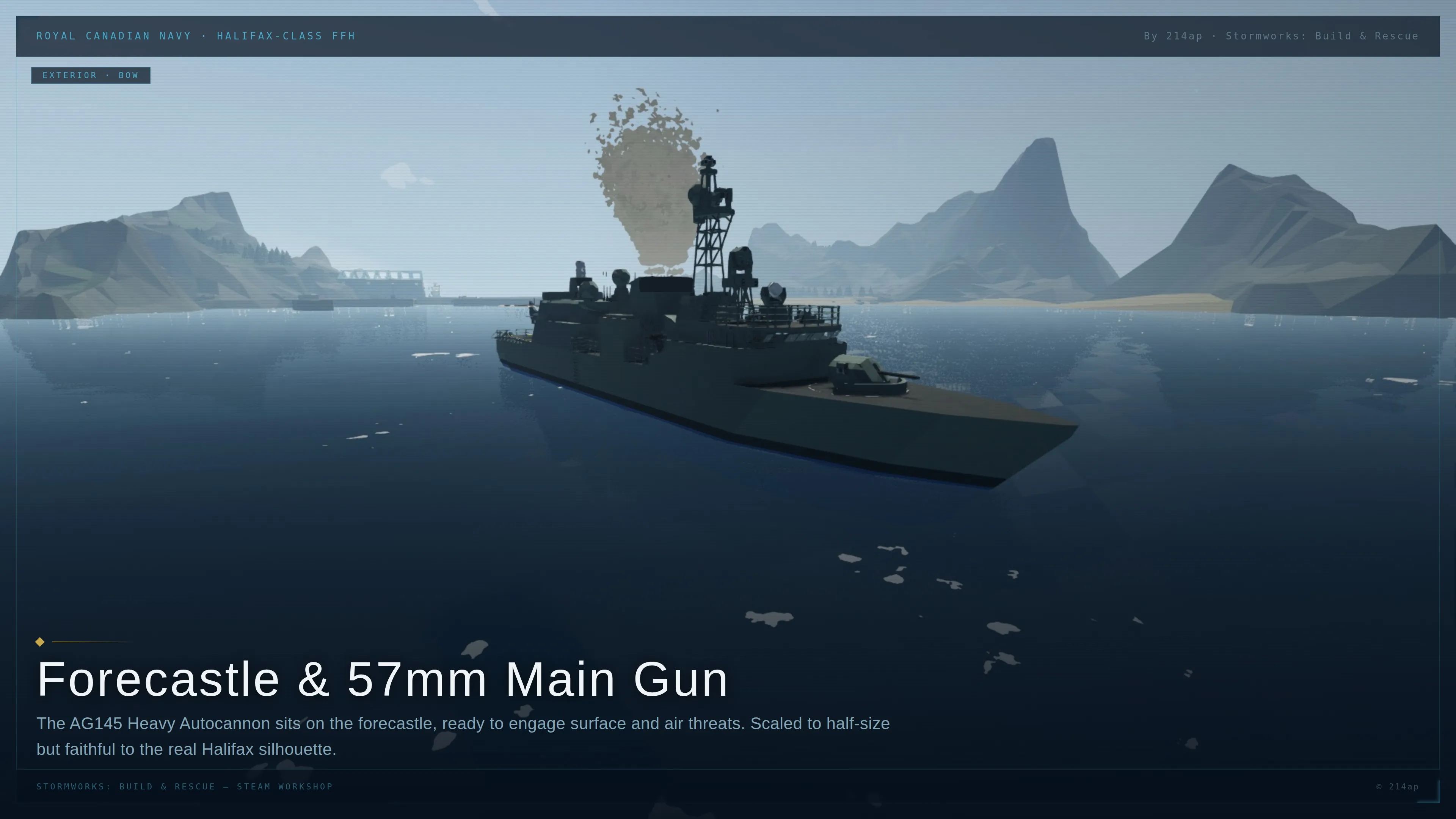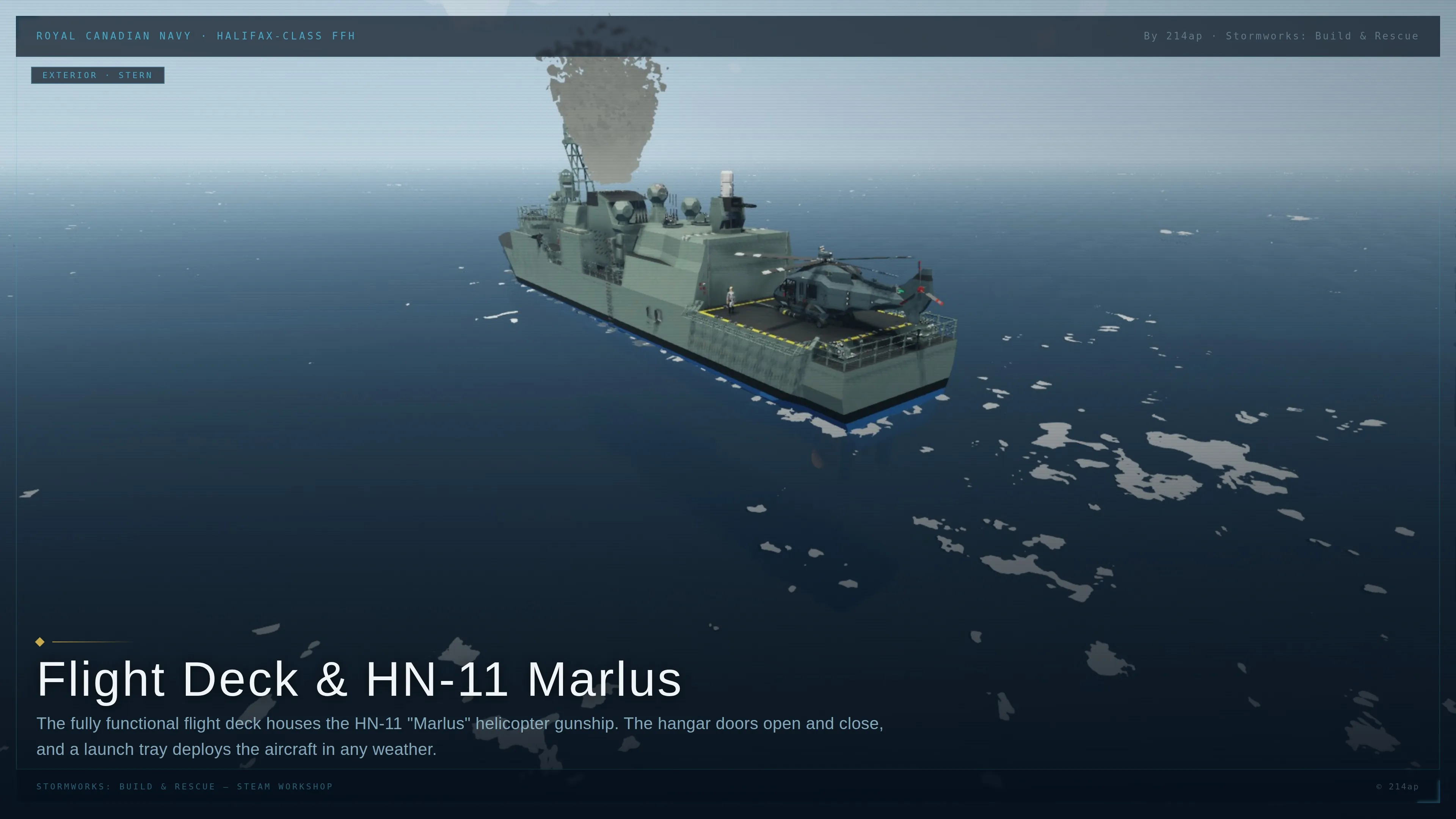 The Halifax-class frigate — also known as the City class — has been the backbone of the Royal Canadian Navy since 1992. Born from the Canadian Patrol Frigate Project of the mid-1970s, HMCS Halifax was the first of twelve Canadian-designed and Canadian-built vessels, combining anti-submarine warfare with surface and air defence capabilities. Now, she's yours to command.
