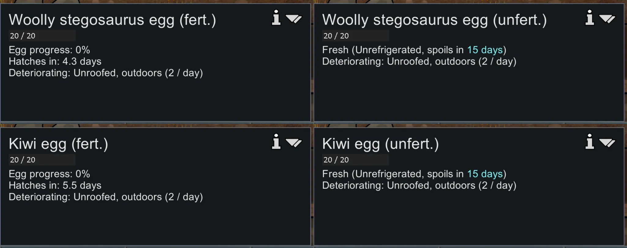- Woolly stego eggs are just called "Woolly Stegosaurus (fert./unfert.)"
