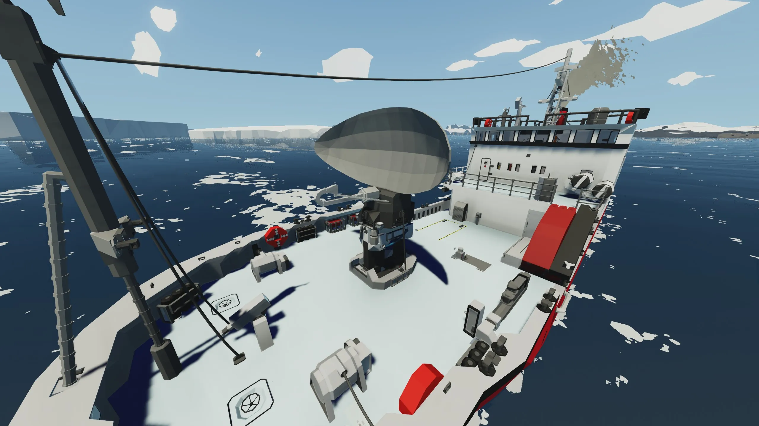 An arctic exploration and research vessel complete with a LAB, ARMOURY, RADAR ROOM enough radar equipment to make the navy jealous), CREW QUARTERS, WORKING ENGINE ROOM, LIFEBOAT WITH CRANE, KO KB-29 BOOM CRANE, BOW CRANE, STORAGE.