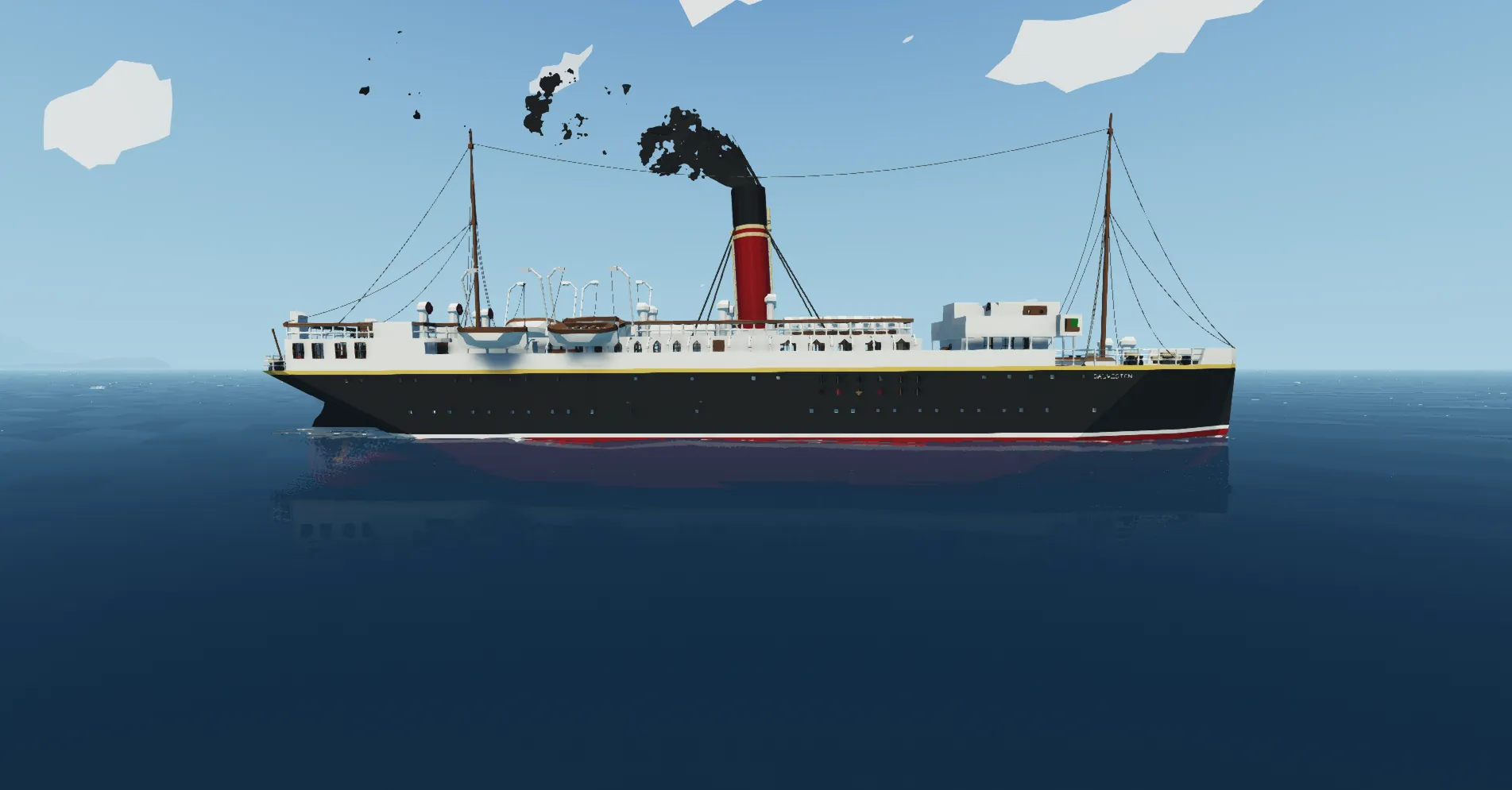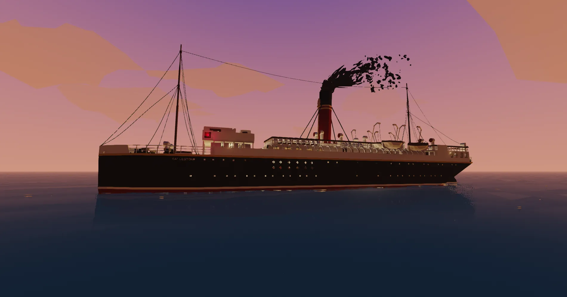 SS Galveston is based on the Roblox ocean liner of the same name, built in 2020 for the Lone Star Line by LonerStarGaming & Kudzuuki (LouisSabuki).