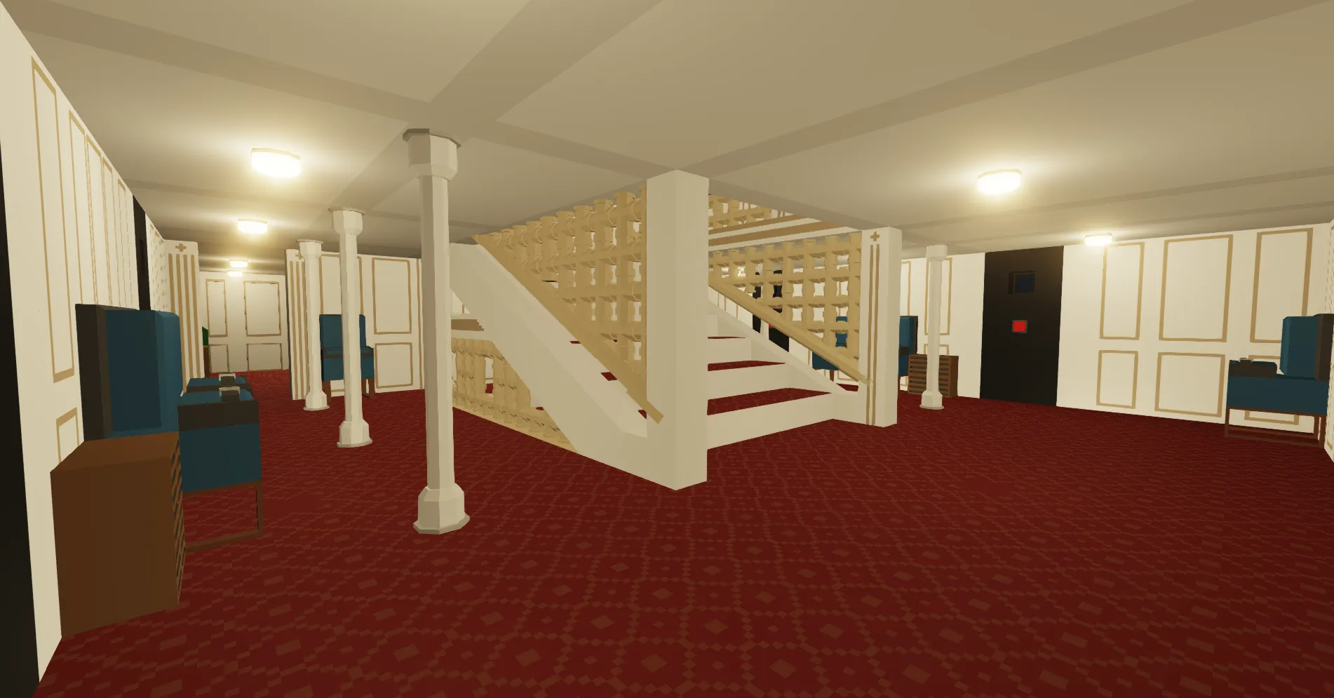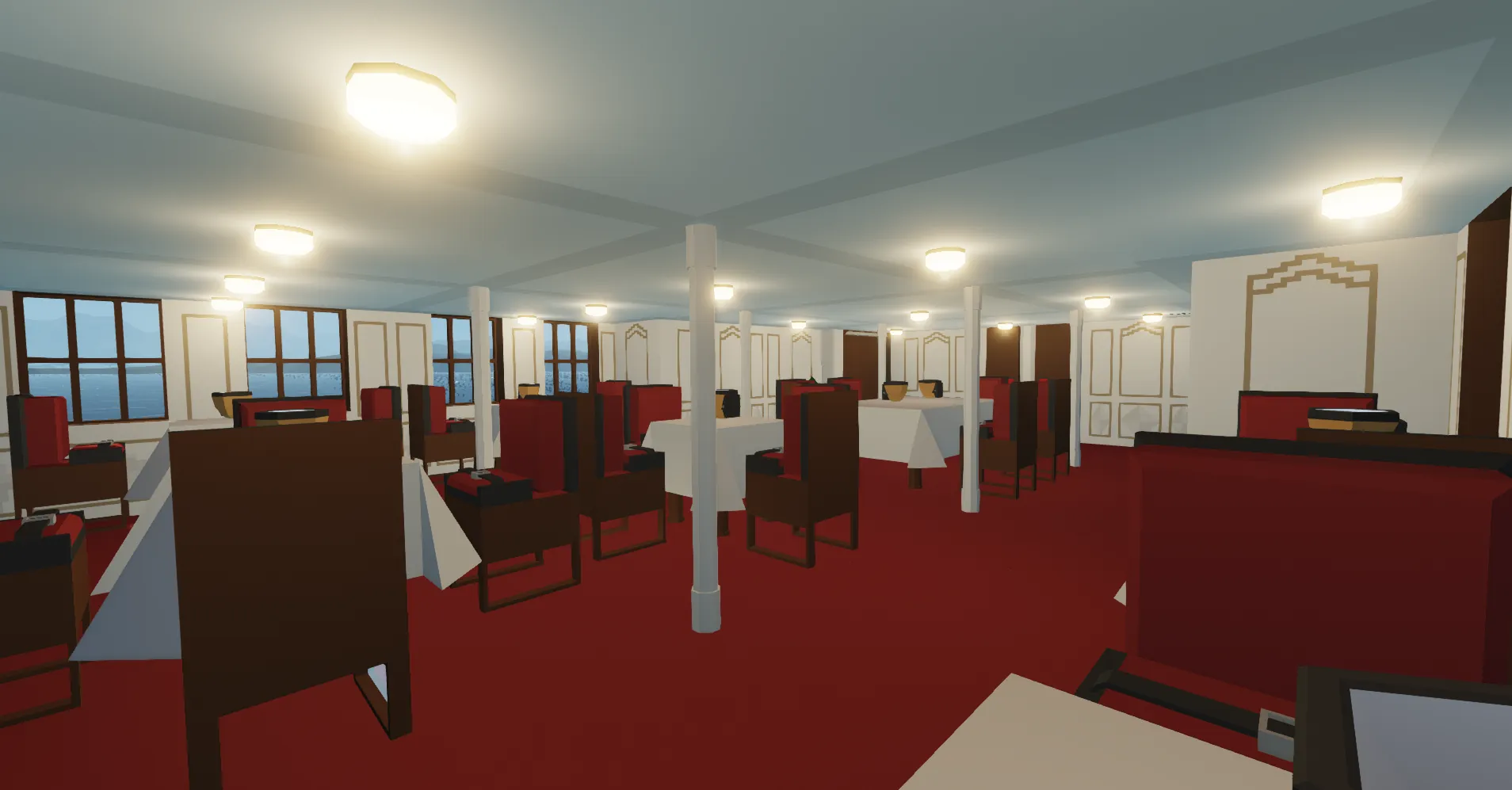 I added a few spaces which aren’t actually on the Roblox model, including the gymnasium, engine room, boiler room, cargo spaces, bathrooms, and chart room.