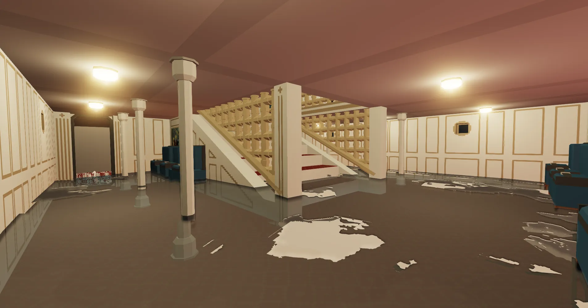Keep in mind that the ship’s staircase is not watertight, this is to make the sinking more accurate, since water in Roblox phases through walls…
