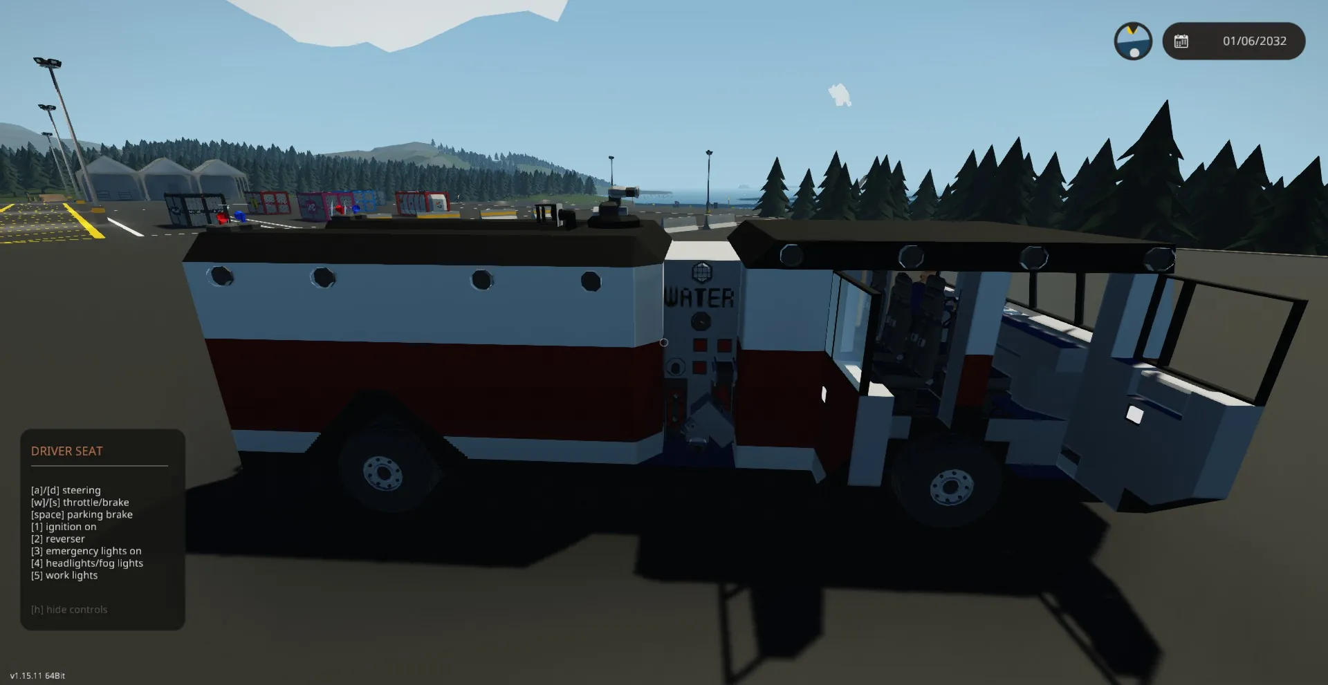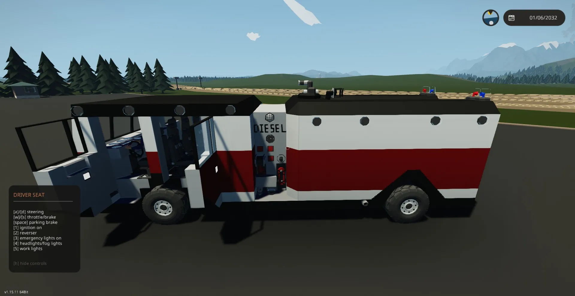 features: water tank that contains 9k liters of water, emergency lights, yellow/blue fog lights, 8 passenger seats, almost every non dlc specialty equipment, bed, inline 6 engine with speeds up to 40 m/s, far spray water cannon, diesel/water pumps for refilling.