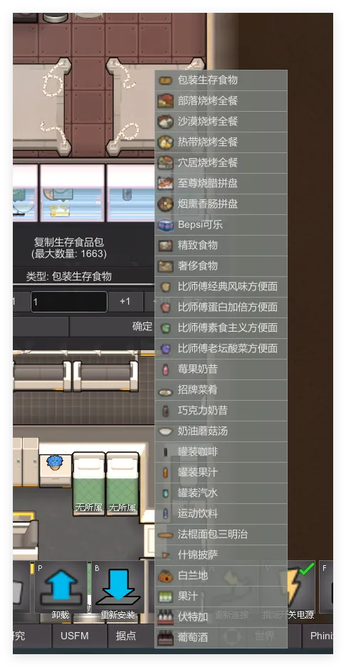 Original version: Gourmet/Meat/Vegetarian food, Luxury/Meat/Vegetarian food, Shiny Medkit