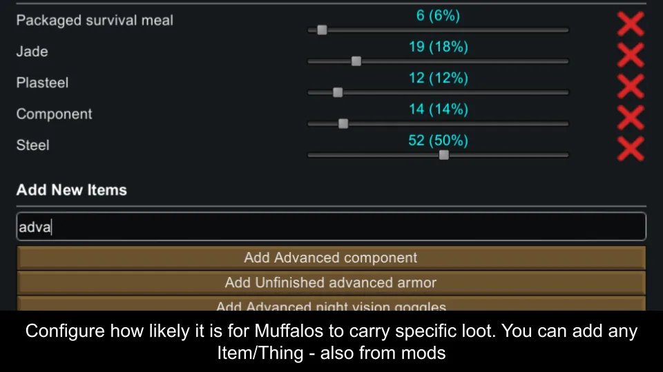 [*] You can freely configure in the setting menu how strong the caravan is, how often the quest shall be triggered and what loot the Muffalos in the Caravan may carry
