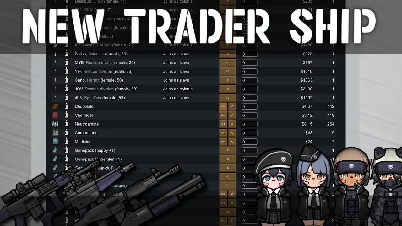 新規の軌道トレーダー商船が追加され、そこで購入することもできます。この商船はコロニーの人数が多くても人を販売するためにあなたのコロニーへ訪れます。