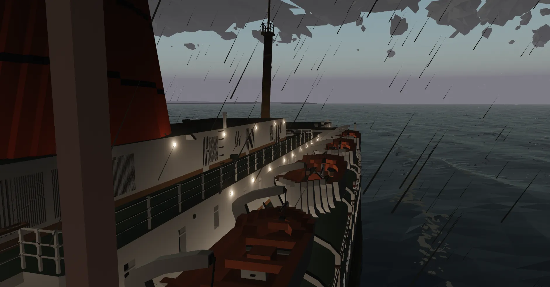 The sink button can be found in the Captains Dayroom, (the room below the bridge), behind the desk, I have tried to get the sinking to be close to how she actually sank, but it isnt 100% accurate because of stormworks related nonsense