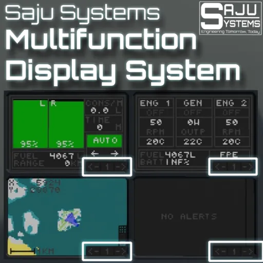 This is the Saju Systems Multifunction Display System! With this you can create a multifunction panel for every monitor size. What is a multifunction display system? A multifunction display system is a system that allows multible controllers/systems be displayed one at a time on a single monitor. Almost every [url=https://steamcommunity.com/sharedfiles/filedetails/?id=3681210633] Saju Systems Controller[/url] supports this system.