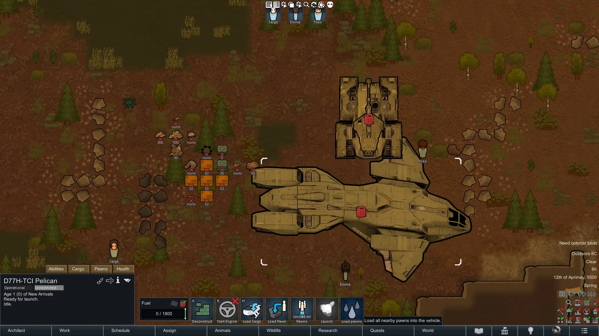 Simple mod that adds CVN Mechanoid Warfare Core's load pawn gizmo, allowing for hauling of vehicles. Also changes the weight of the scorpion from 66,000 kg to 6,600 kg in order to be able to fit in pelican's max carry capacity of 7,200kg.