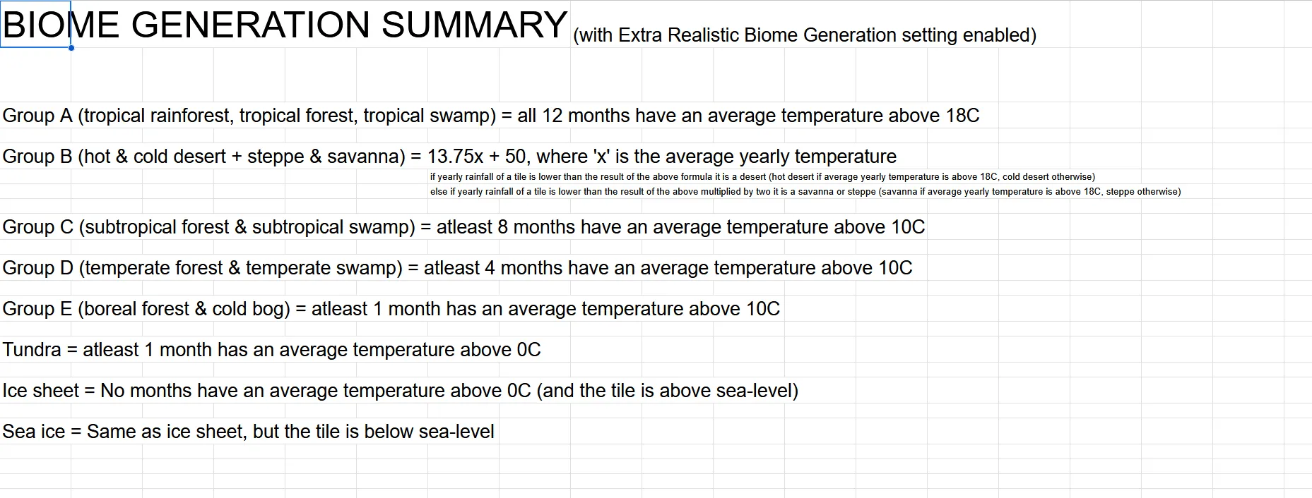Extra Realistic Biome Generation: When enabled biome generation is determined by monthly (twelfthy) average temperature of a tile rather than yearly temperature (see the summary above for more info), which is more realistic. However it also significantly increases world generation time, up to 10 minutes for a full 100% coverage world. Enabled by default.
