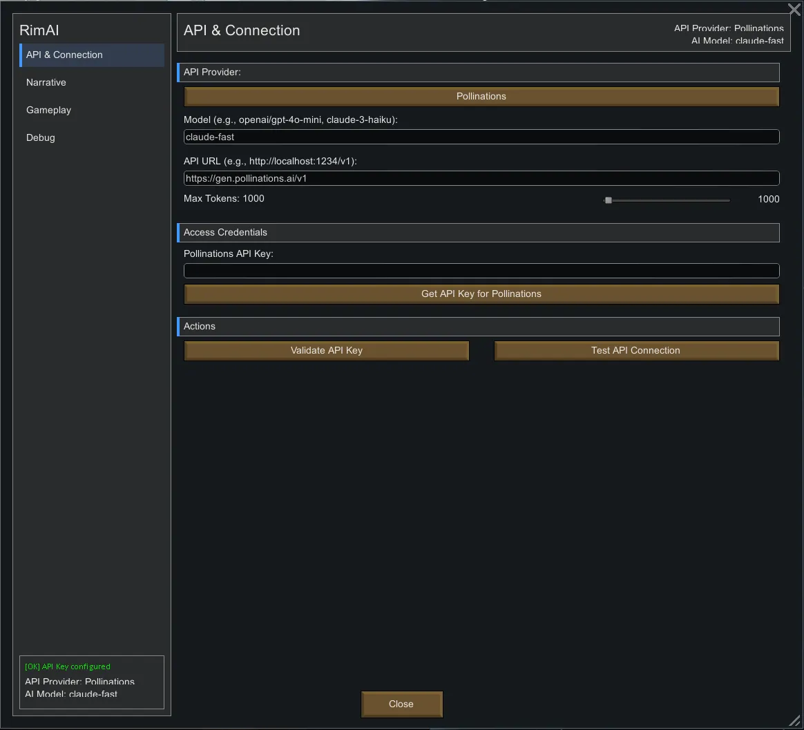 Pollinations offers free access for text generation. get an API key > [url=https://steamcommunity.com/linkfilter/?u=https%3A%2F%2Fpollinations.ai%2F]https://pollinations.ai/[/url].