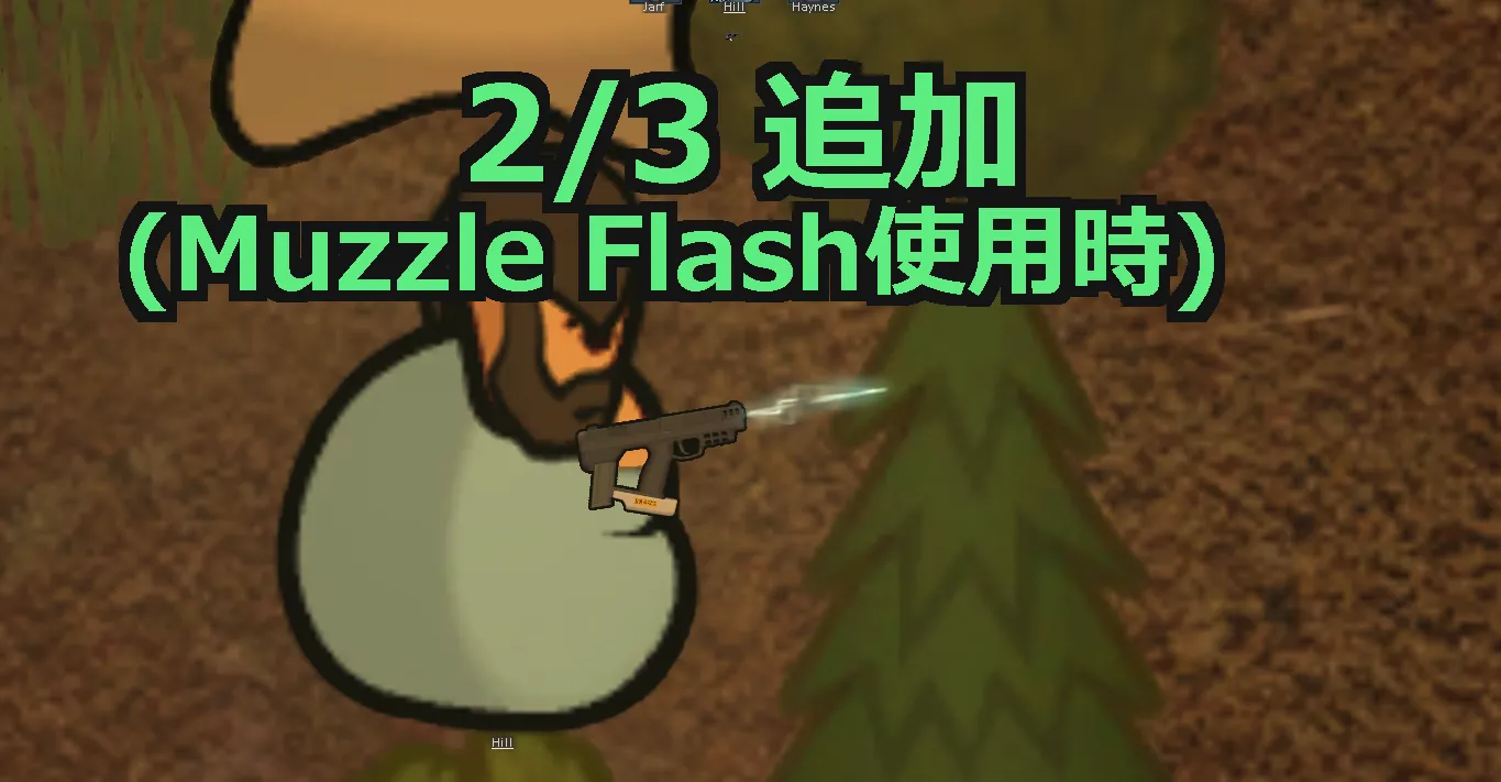 全ての銃がMuzzle Flashに対応しています。迫力が増してカッコいいので併用を強く推奨します。