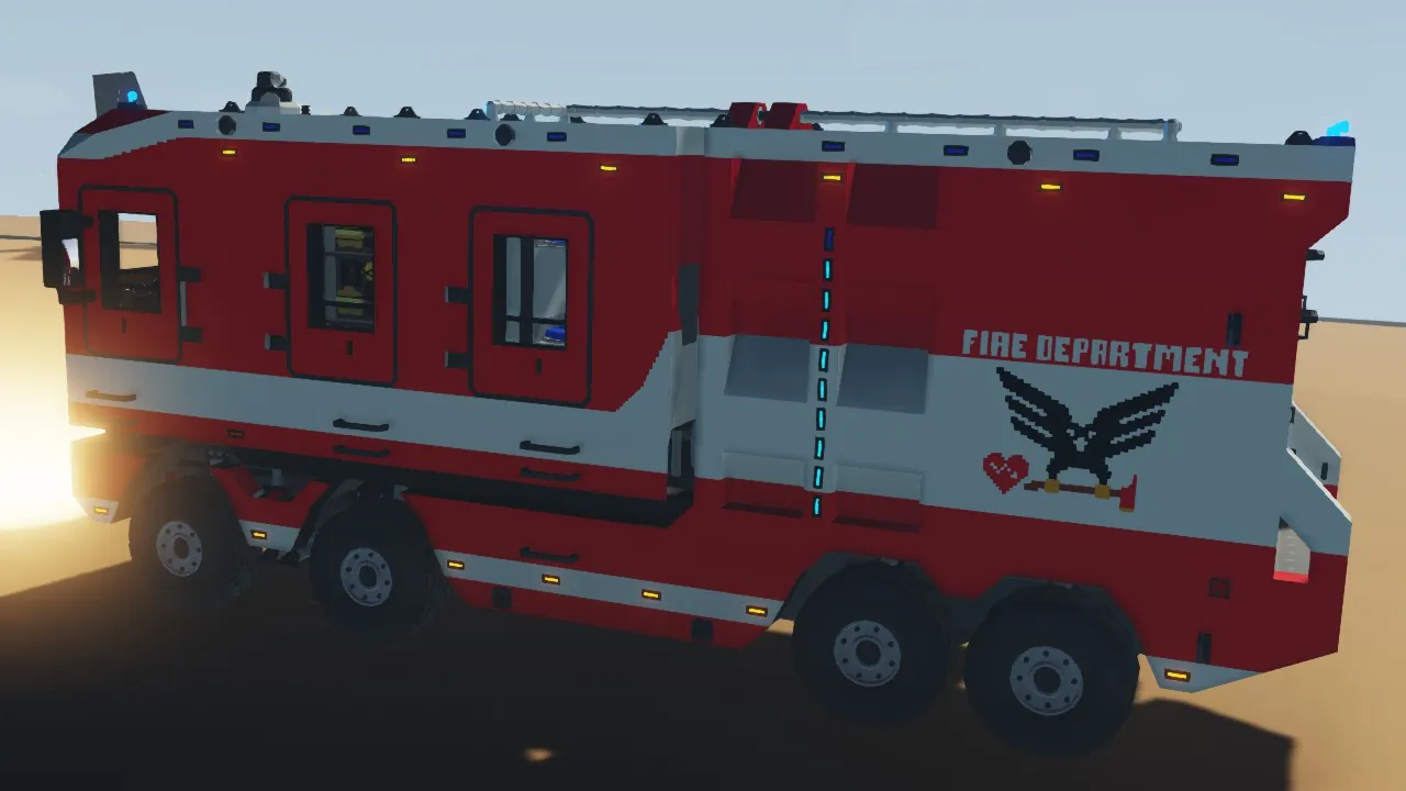 This is my idea of a usable fire engine in singleplayer, combining Stormworks features like the ambulance compartment in the back of the cab and a somewhat realistic truck chassis/euro fire engine.