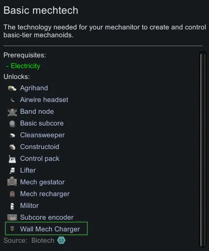 Tier 3: Recharges any mech in base Biotech (Light, Medium, Heavy, UltraHeavy), will recharge any mech from mods that has one of this categories under the hood. And will do it at 200% a day (4x regular charger). Of cource it is pricy. Why not. Wanna cheap? Use base chargers.