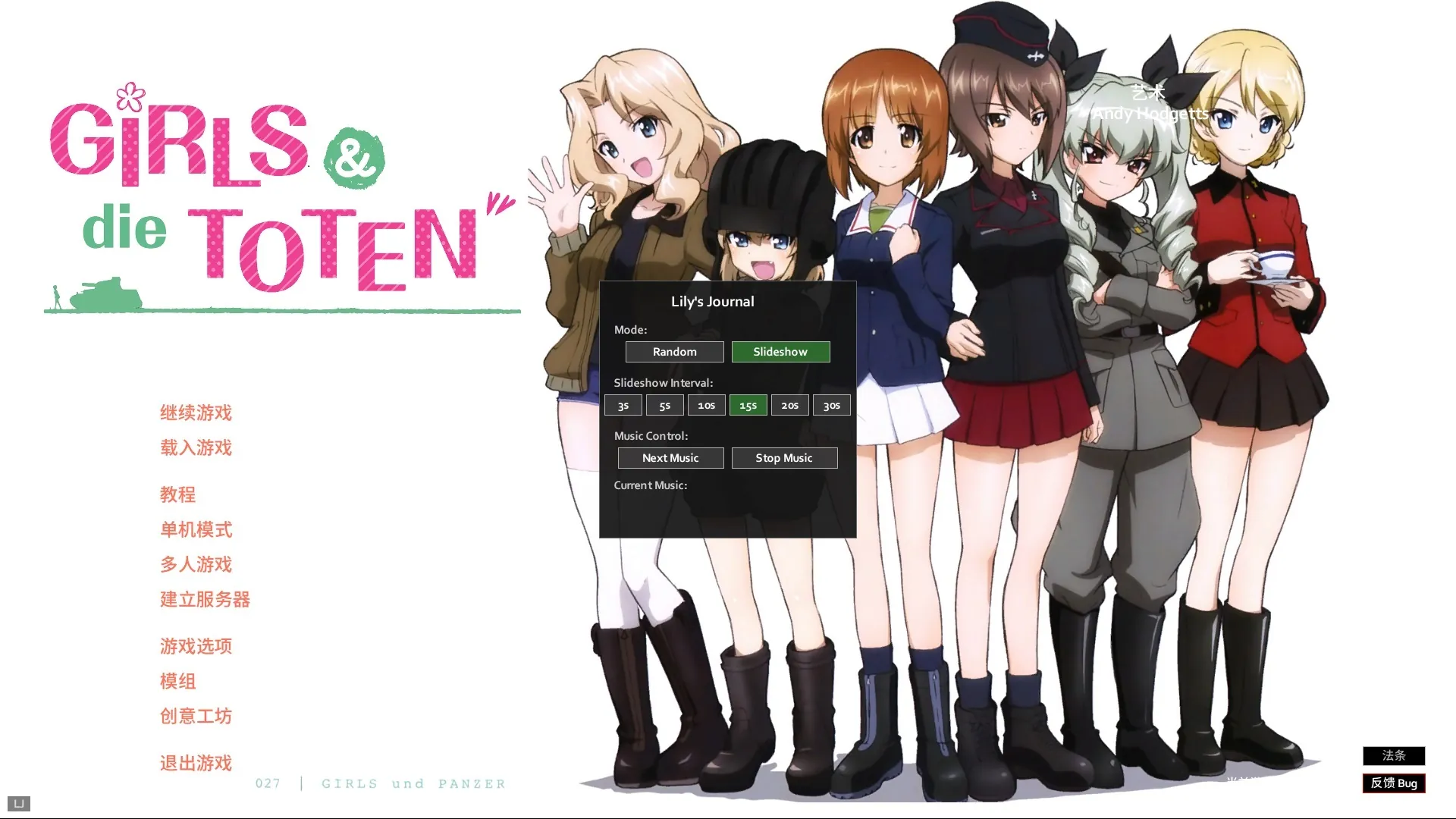 Inspired by[u][url=https://steamcommunity.com/sharedfiles/filedetails/?id=3662166600&searchtext=lily%27s]Lily's Journal - 16:9 Borderless[/url][/u] and [u][url=https://steamcommunity.com/sharedfiles/filedetails/?id=3656164278]Anime Main Menu[/url][/u], I created this all-in-one Girls und die Panzer 16:9 themed UI + BGM mod, featuring main menu visual overhaul, quality-of-life improvements, and full customization. See the mod's video and screenshots for a full preview.