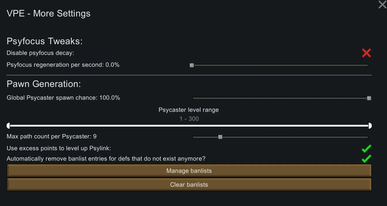 This mod adds settings I wanted to have for my own VPE runs, notably the ability to restrict certain factions/xenotypes to certain paths.