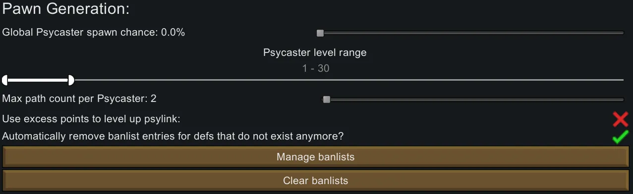 This mod uses harmony to alter the way pawns generate, meaning that other mods that allow random psycasters to generate have a high chance of being incompatible with this mod. (if possible, disabling their generation patch through their mod settings will fix this issue.)