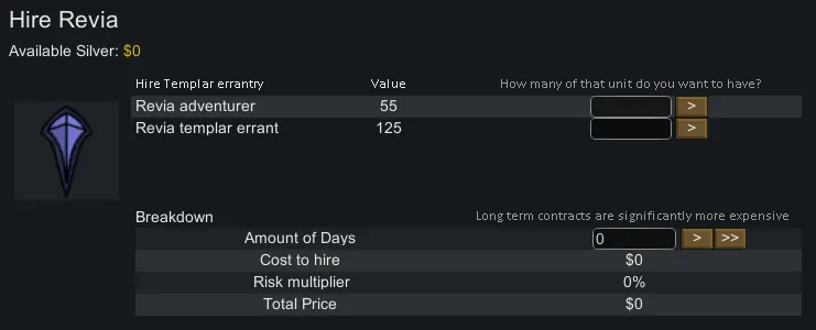 Dead simple mod (for now). Adds an option to hire Revia as mercenaries when you are using them alongside the [url=https://steamcommunity.com/sharedfiles/filedetails/?id=2023507013]VE Framework[/url]. Works with both the [url=https://steamcommunity.com/sharedfiles/filedetails/?id=2020041005]HAR[/url] and [url=https://steamcommunity.com/sharedfiles/filedetails/?id=2893157989]Biotech[/url] versions of the Revia!