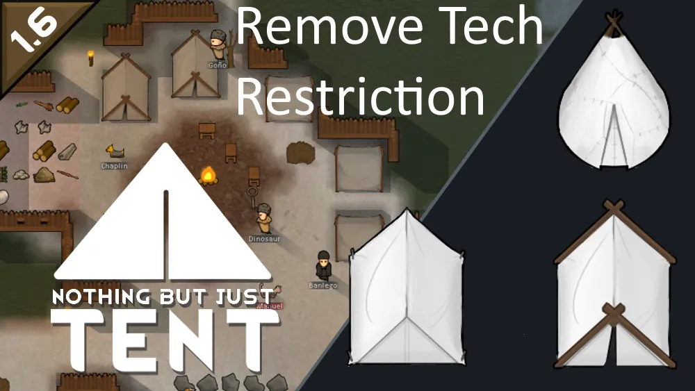 This patch removes the tech level restriction for the Teepee and Viking Tent from [url=https://steamcommunity.com/sharedfiles/filedetails/?id=2407128339]Camping Tent by Aoba[/url], so that they can be built by anyone as long as the research has been unlocked.