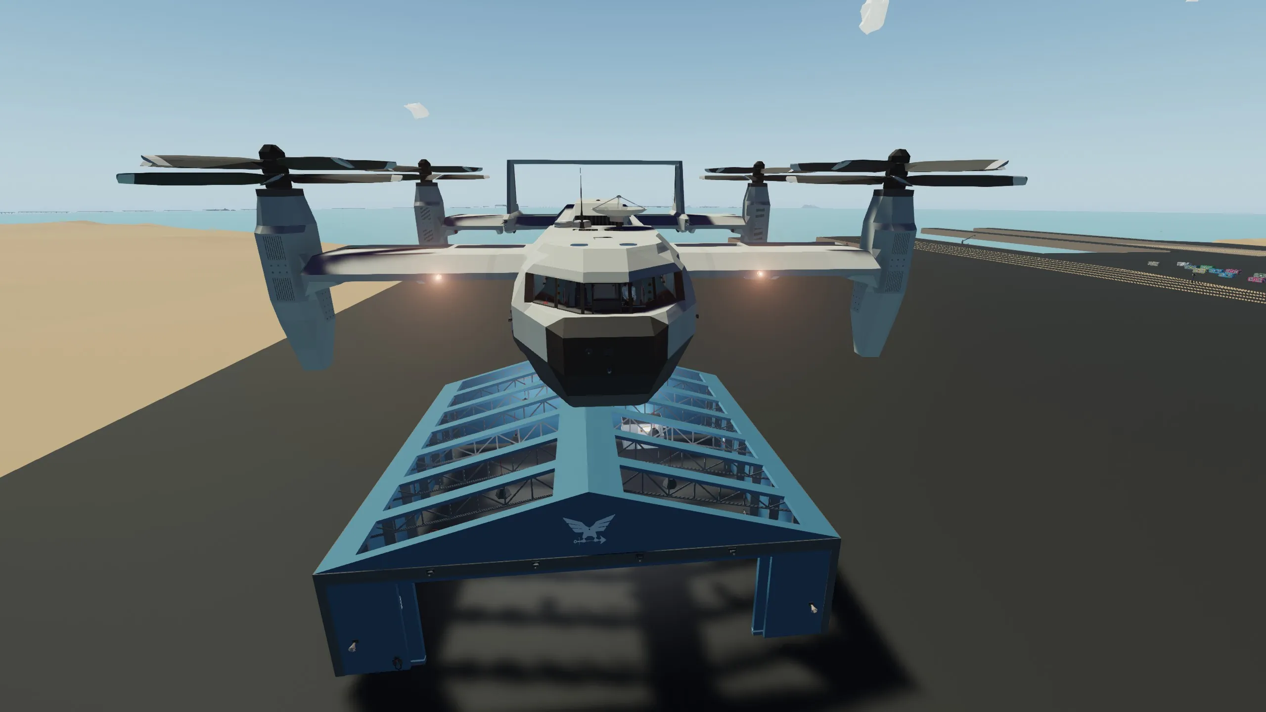 This is a good exploration and utility VTOL great for playing with and having fun It has a built in Radio System and other cool things Controls: W, A, S, D, UP, DOWN, LEFT, RIGHT