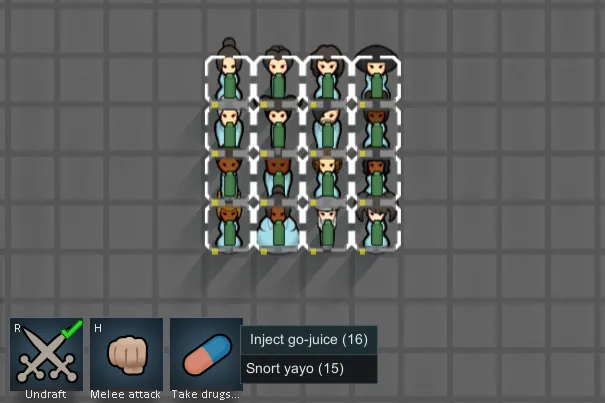 Allows multiple drafted pawns to take drugs at once.