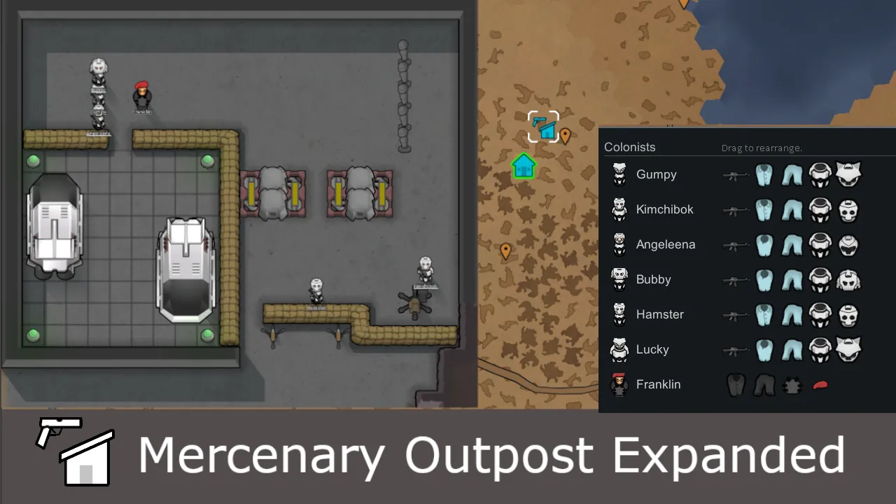 Overhauls the Mercenary Camp from [b]Vanilla Outposts Expanded: Additional Outposts[/b], turning it into a meaningful something, not just a place to gather silver with unimportant pawns.
