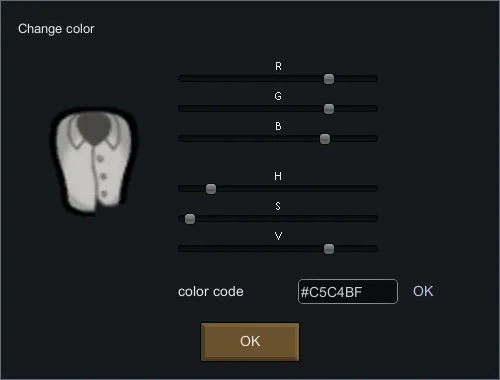 - Dish(?) icon button in cloth row : you can change color of the cloth.(*3)