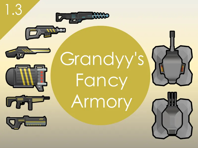 This package adds 6 ranged weapons and 2 turret towers. The reason I call it "Fancy" is that the content is too mixed to summarize. The most brutal weapon I think is mini rocket launcher, so I lowered the damage. And "Tall Turrets" was expected to shoot over walls, however it seems to take a lot of work coding, so it end up as simple rocky turrets.