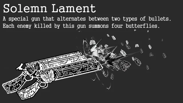A scythe and gun that summons both Dead and Living Butterflies at the victim's location when slashing an enemy.
