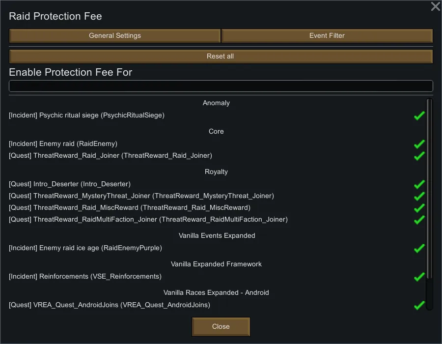 A: VFE-Settlers adds a specific new event that only accepts Silver. This mod covers most humanoid raids—including those from other mods—and allows payment with any resource.