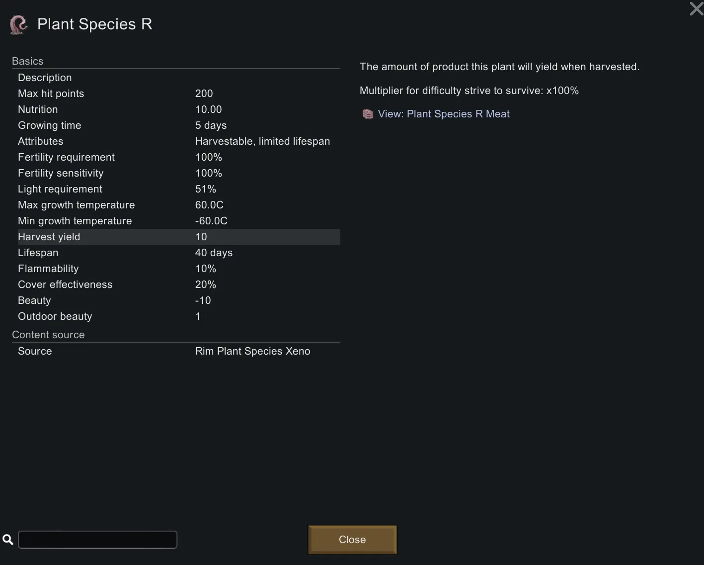 Adds a special plant to the game. The Plant Species R is a massive tentacle-like crop that yields raw meat when harvested.