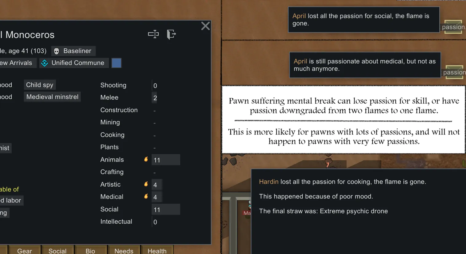 [*] New mental break, lose passion - mental break that can occur to pawns with lots of passions, pawn with few passions will not have this kind of break and it is more likely to happen to pawn wirth lots of passions.