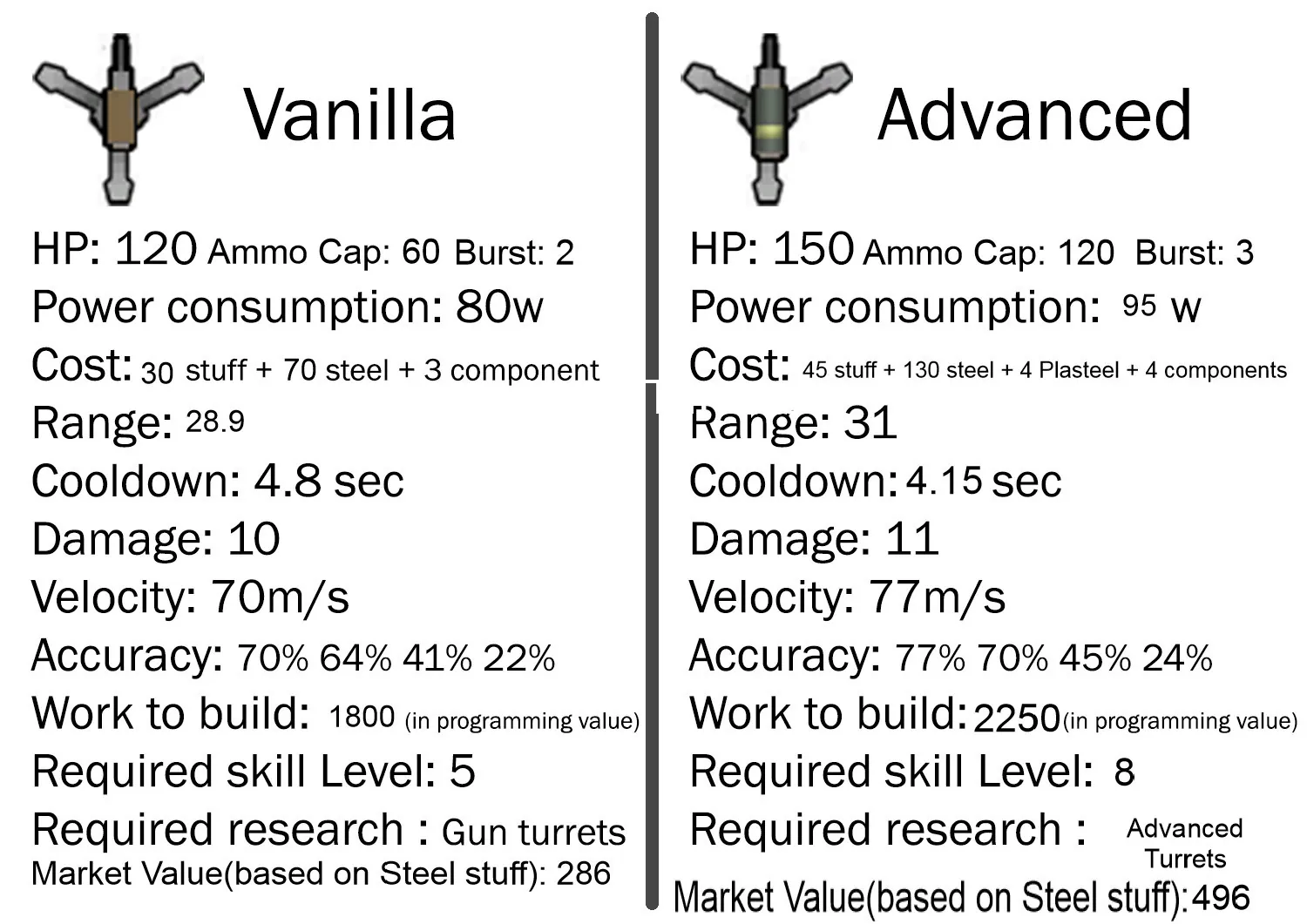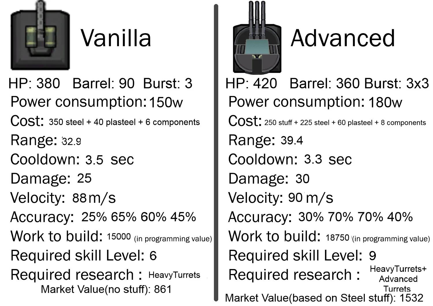 [b]I had another turret texture hanging out in an unused mod folder. I added an advanced autocannon turret, The TRI-turret and an advanced sniper turret, The KE-2 Sniper Turret.