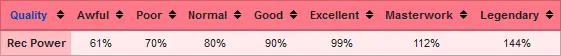 [*] RDU adds quality to the drums, so their recreation power and other stats scale. PTD does not.