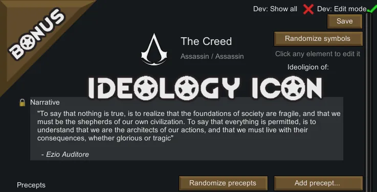 [*] [b]an Assassin Ideology Icon as a Bonus[/b]