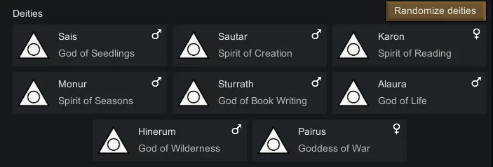 A mod that lets you have three times as many deities as usual in your ideoligion, if you would normally be allowed to have multiple deities. Usually the most deities a vanilla ideoligion can have is four (eg. with the Embodied Theist structure) - this mod increases that to twelve.