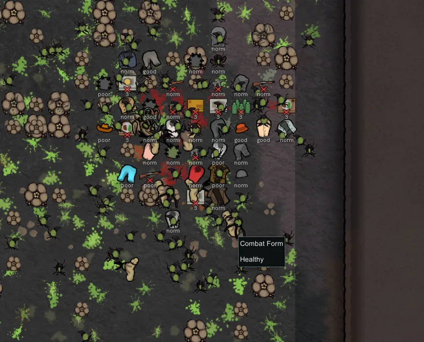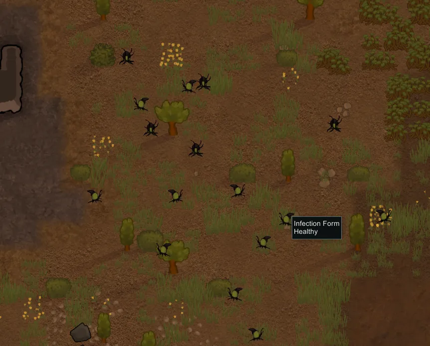 If attacked by an infection form your colonists CAN BE TURNED INTO COMBAT FORMS. try not to get too close to these little buggers and for the love of god if you see flood hives on the map kill them ASAP.