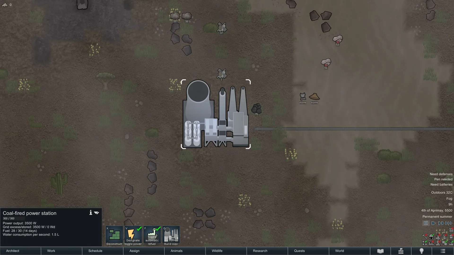 As an extra something if you're using Vanilla Expanded - Power your nuclear power plant now requires water and a lot of it so keep the pumps in working order if you don't want to find graphite on the roof.