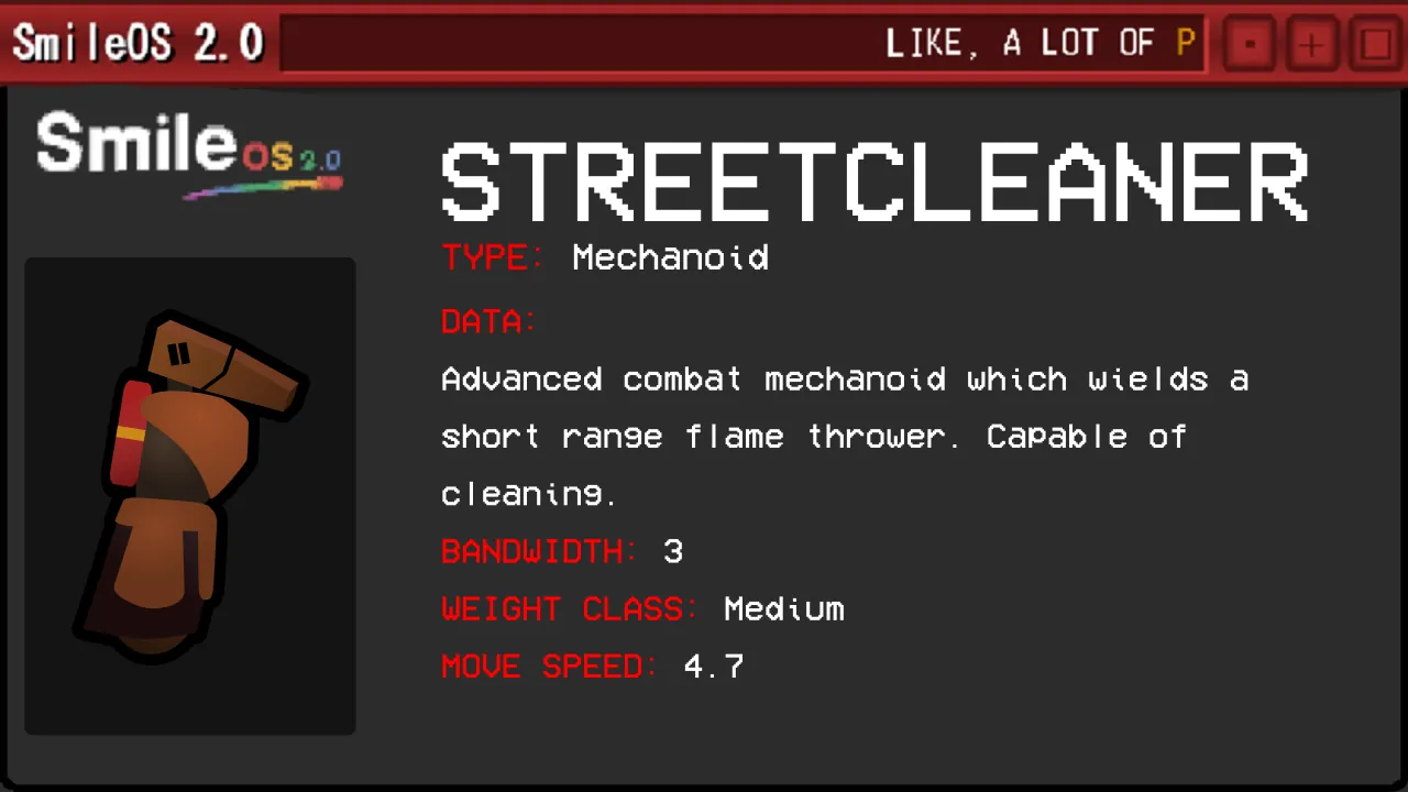 This first mod, Streetcleaner Mechanoid, adds in the street cleaner enemy as a gestatable mech. They are unlocked by the High Mechtech research project, and function as high level scorchers. They are faster, have a superior range, and can fire and turn on a dime in comparison to Scorchers, who require a whole four seconds of commitment with each shot. Streetcleaners are also capable of, well, cleaning, and do so with a slightly higher speed than cleansweepers.
