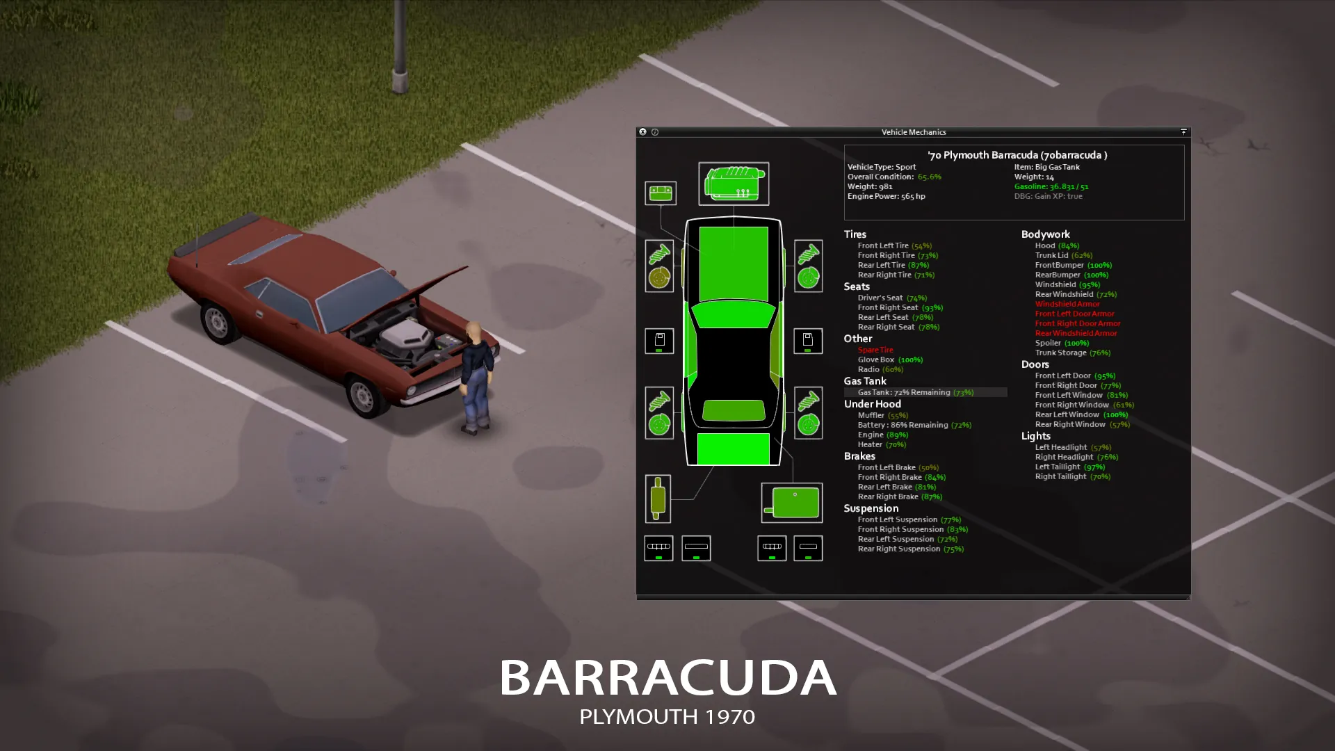 Up for some more muscle car action in Kentucky? One and only Plymouth Barracuda! 3 chassis variants with their own distinctive features, try to find them all! Barracuda has a full set of armor and a some parts to customize it. It's fast and loud, it lacks in storage and tire protection so be warned and have fun! It can use Challenger and Camaro tires also, and they will be able to use Barracuda tires also. Moving in packs and helping out your mates with repairs will be a lot easier!