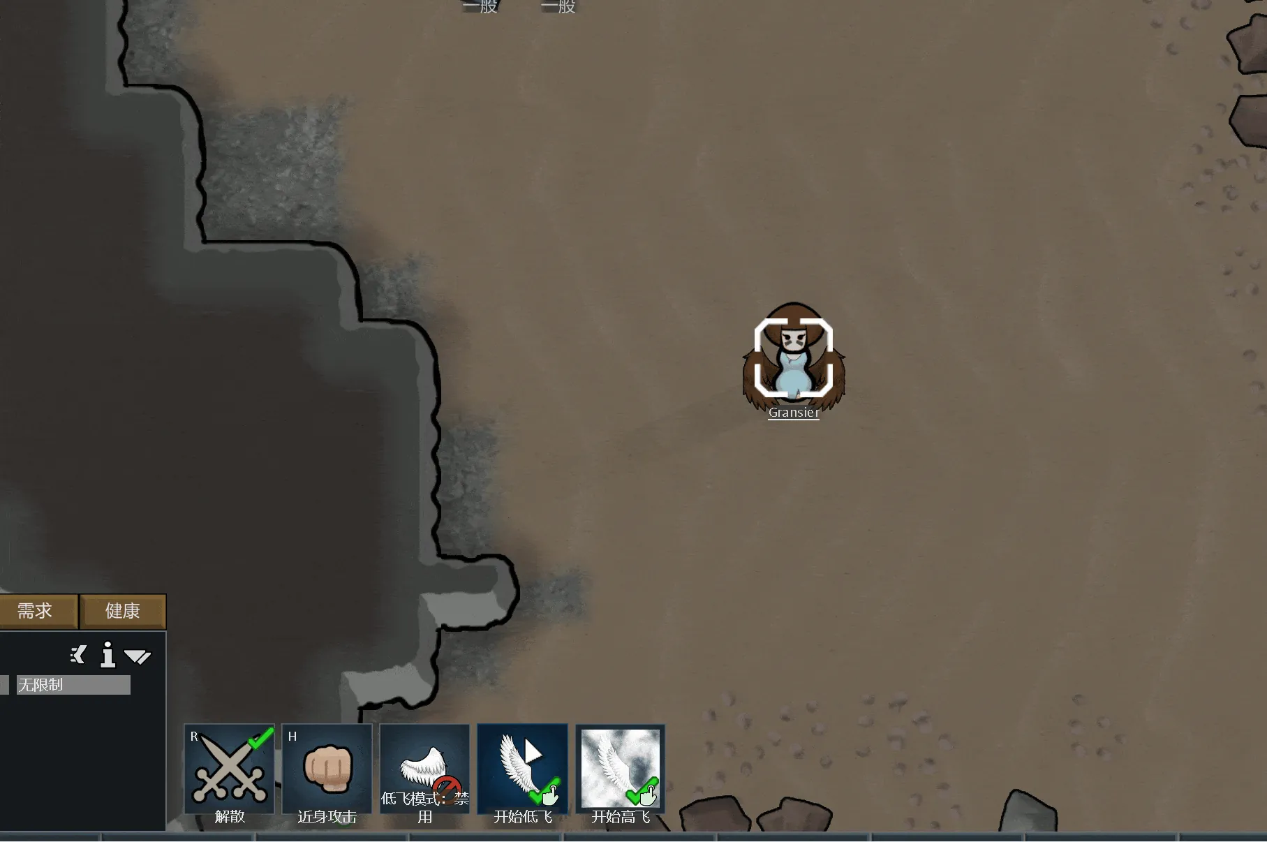 -Low flying mode: In this mode, you can move quickly and ignore most terrain benefits, consuming 0.01 points of food per second to maintain flight.