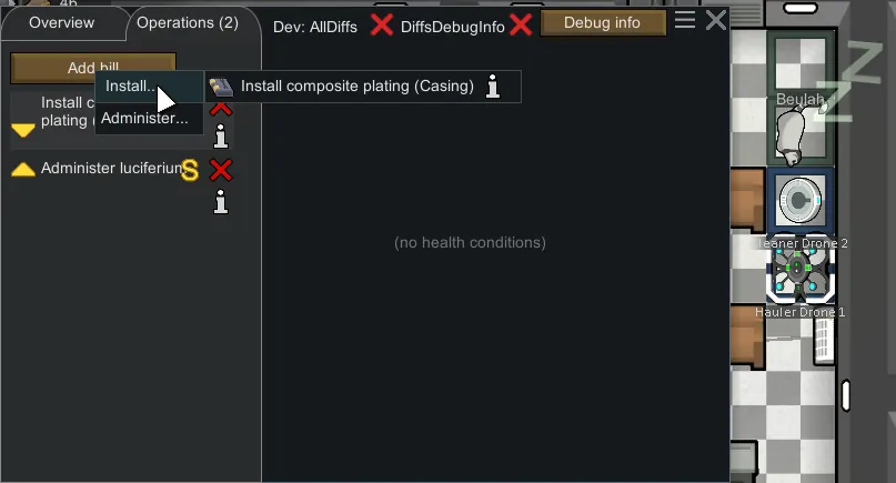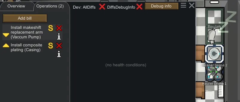 5. I tried to add surgery to install android upgrades to hauler and cleaner (but pawns refuse to operate on them for some reason :( )