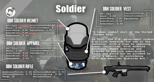 This mod adds Soldier Apparel from Detroit becoming human