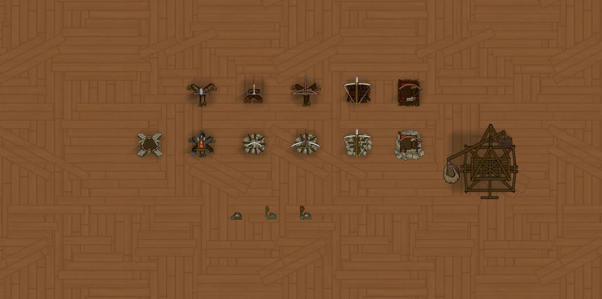 [*] [b]Trebuchet Turret[/b] Slow firing a massive rock chunk that does a lot of dmg. flight is also slow so its better for non moving targets.