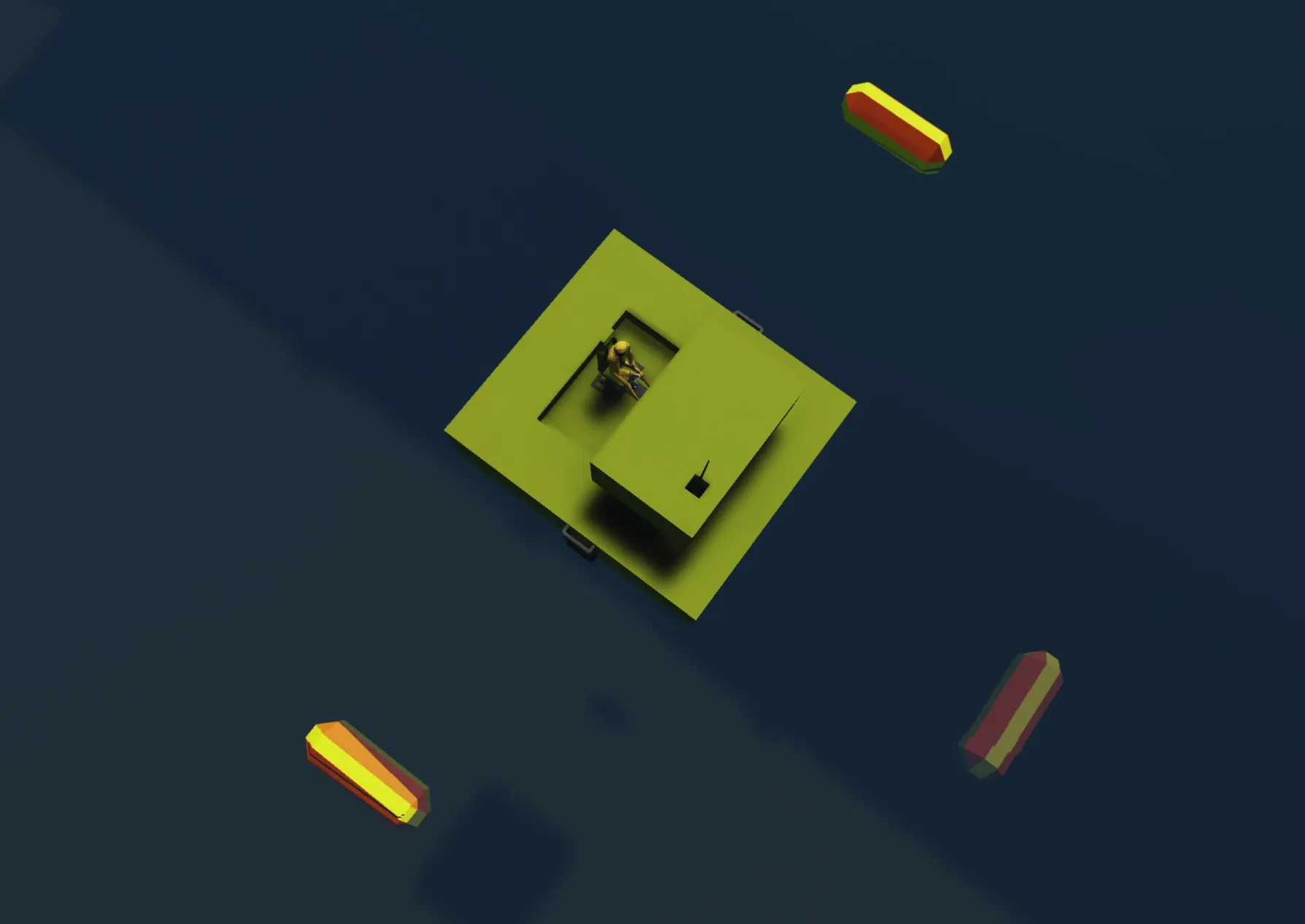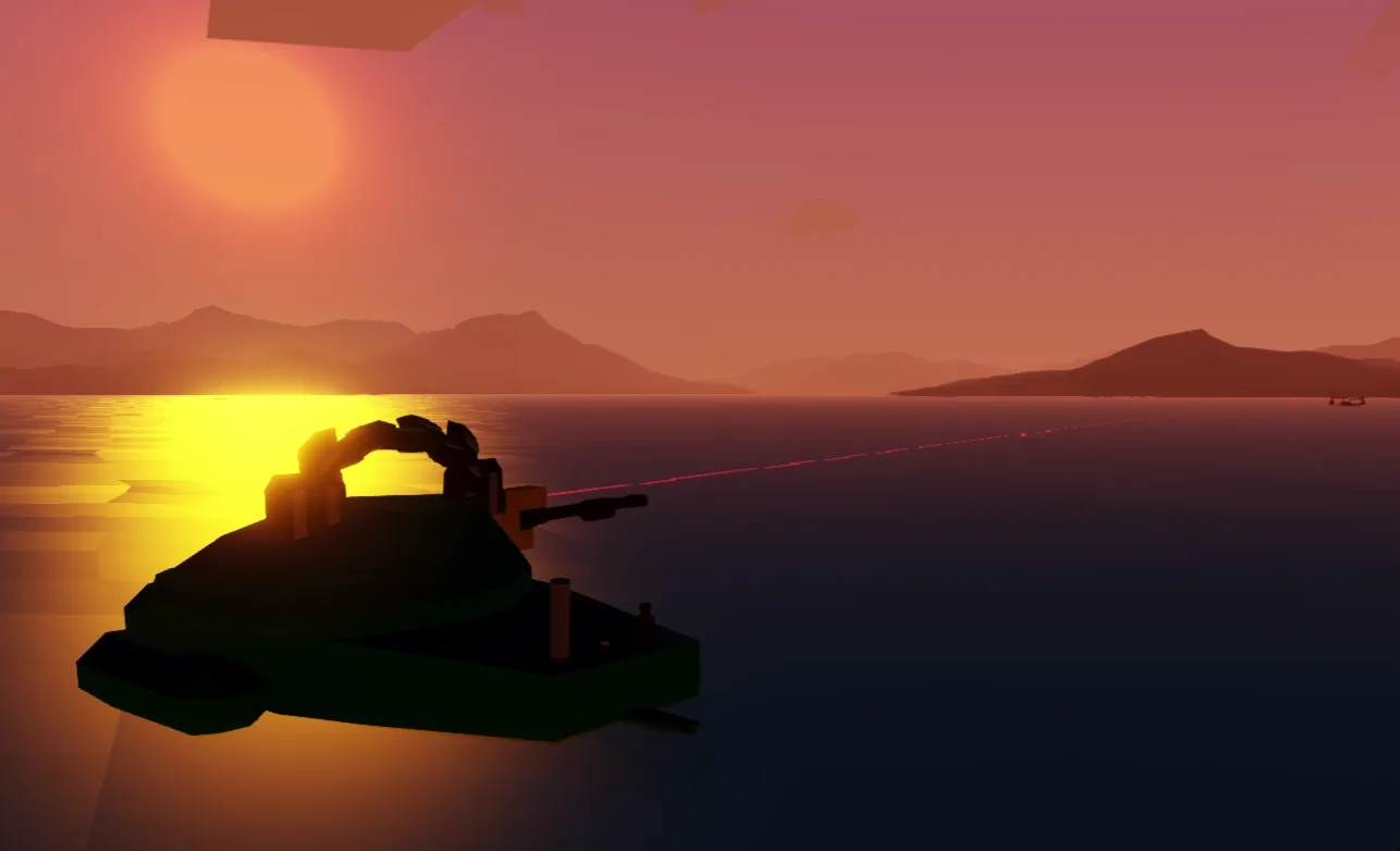 The controls for this one are as simple as possible because I tried to automate everything so that it doesn't end up with 10 different composite lines. First spawn it onto a body of water any spawn point works. Then jump into the water and climb the ladder on the stationary hub to enter the seat. All of the controls are in the bottom left, when aiming i will say try to get as close as possible because the further out you are the accuracy decreases. Other than that everything works well, if you have any issues or stuff like that you can put it into the comments and I'll fix it. Best of luck, happy hunting