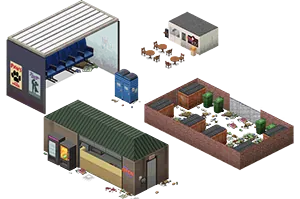 This mod is a collection of community made buildings for Project Zomboid for map makers. This mod does nothing to the game except to provide you with a huge amount of buildings for you to use in your own maps.