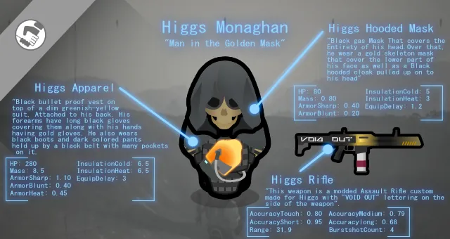 This mod adds Higgs Monaghan Armor Set from Death Stranding
